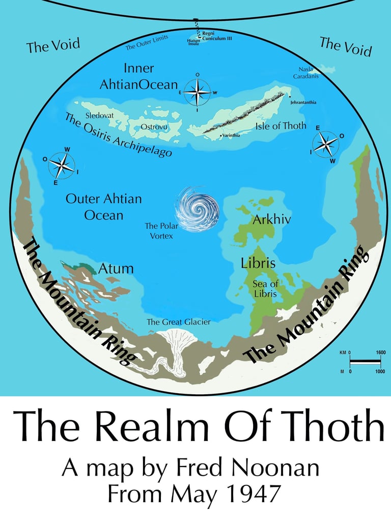 We headed south along the lake known as Porta Lacus, eventually reaching a sea, The Ahtian Ocean. Shortly after that, control of the Dreamliner was taken over remotely, something we were told would happen and we were then flown into a vast chasm on a remote island, Serenitas Insula, and along a tunnel called Regni Cunicium III which incredibly had a railway running along its floor. The tunnel, and I know this will simply sound ridiculous, folks but let me assure you is true, enabled us to fly beneath the firmament-rim of our old world (from now on to be called Earthland), the void beyond it and then under the edge of another firmament, that of a completely separate realm, Thoth!